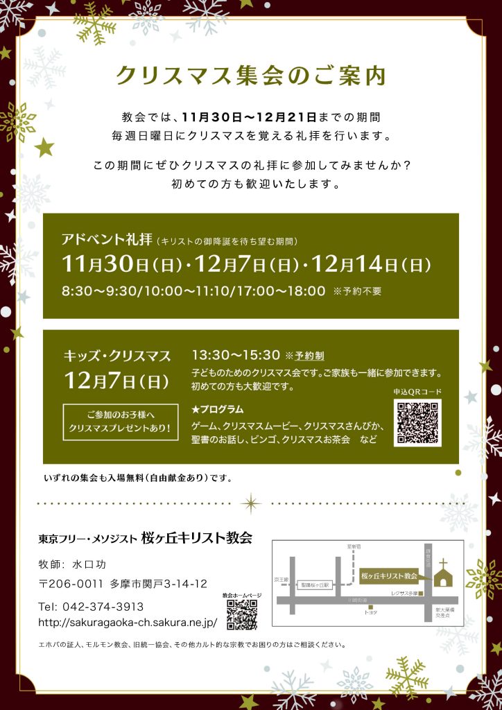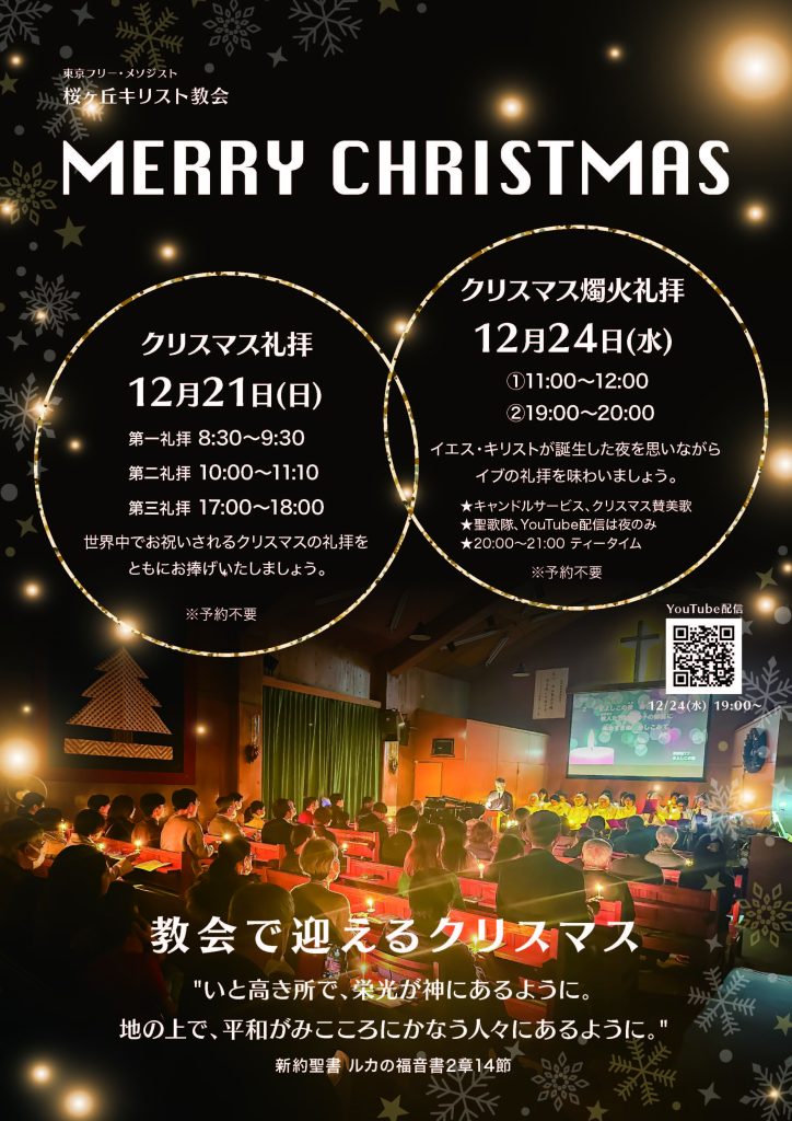 桜ヶ丘キリスト教会ではクリスマスの季節にクリスマスの礼拝とさまざまな集会を予定しています。ぜひお気軽にお越しください。